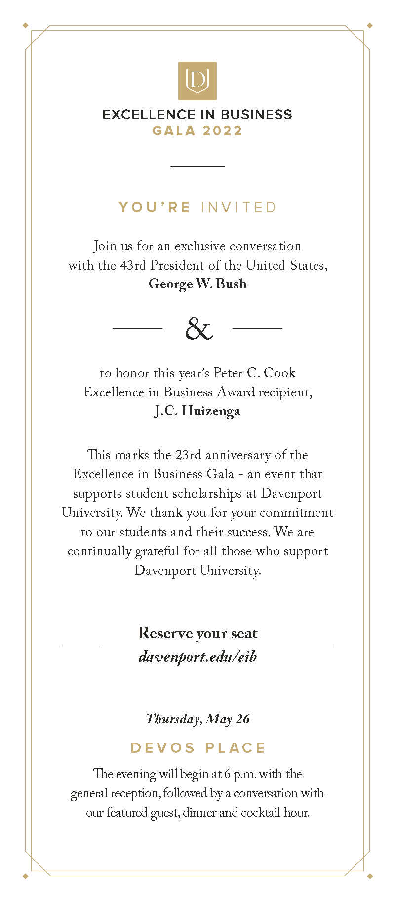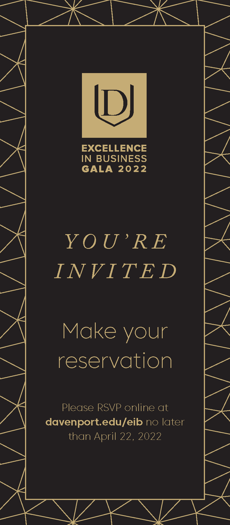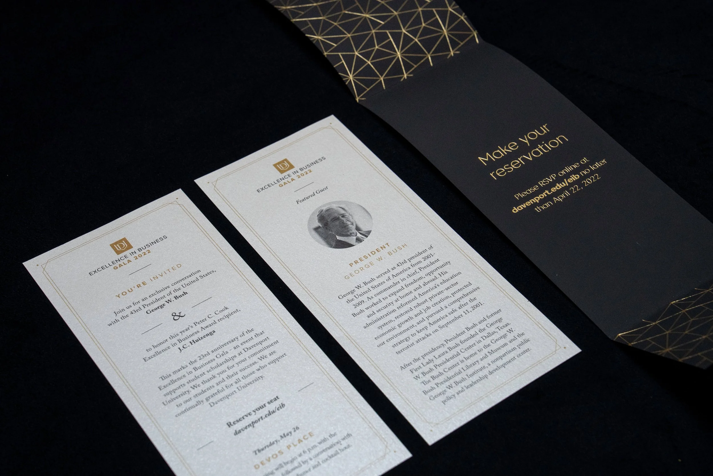 Davenport University’s signature event, the Excellence in Business Gala. I developed the event’s visual identity and overall brand experience, as represented by the selected materials shown below.